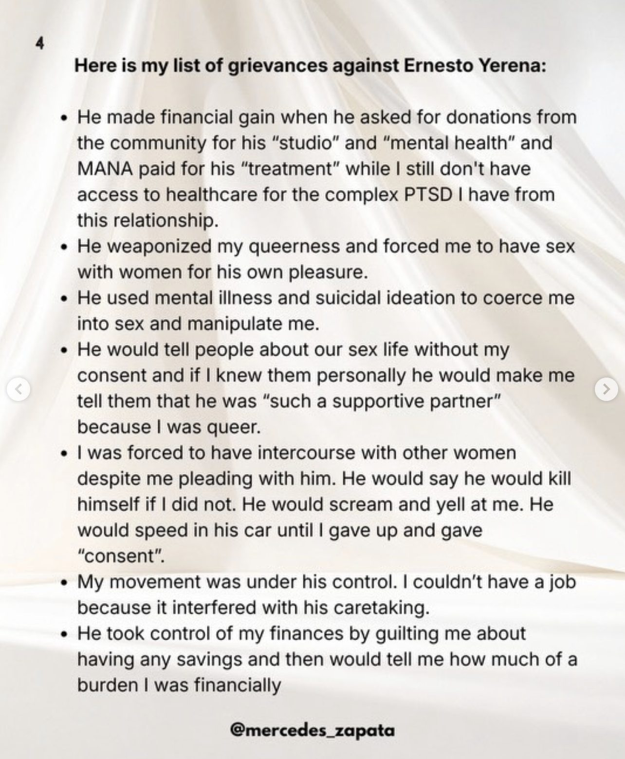 Ernesto Yerena Montejano, a Chicano artist known for politically driven work rooted in identity and activism, first addressed the situation through an Instagram post announcing a 16-page statement, directing followers to read it through a Dropbox link. The post included the song “Judge Not” by Bob Marley, a choice that many people in the community described as inappropriate given the seriousness of the allegations, with some calling it tone deaf and misaligned with the gravity of the moment. The song was later removed after the backlash grew.